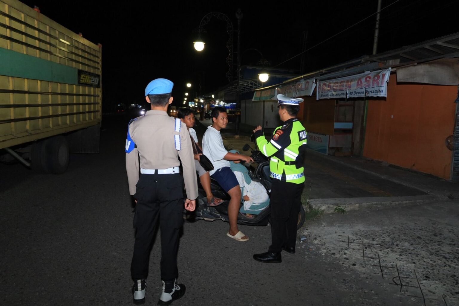 Tidak hanya melakukan pengaturan lalu lintas, personel juga melaksanakan pendekatan langsung kepada pengguna jalan melalui kegiatan sosialisasi dan edukasi keselamatan berlalu lintas. Upaya ini dilakukan sebagai langkah preventif untuk menekan angka pelanggaran dan kecelakaan, khususnya pada malam hari.